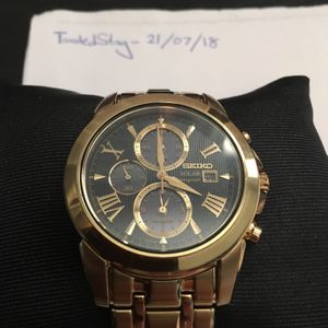 Genuine seiko men s black gold tone le grand sport solar chronograph watch with 22 diamonds.
